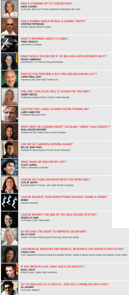 New speakers. New twists on what we think we know about healthcare and our healthcare challenges.