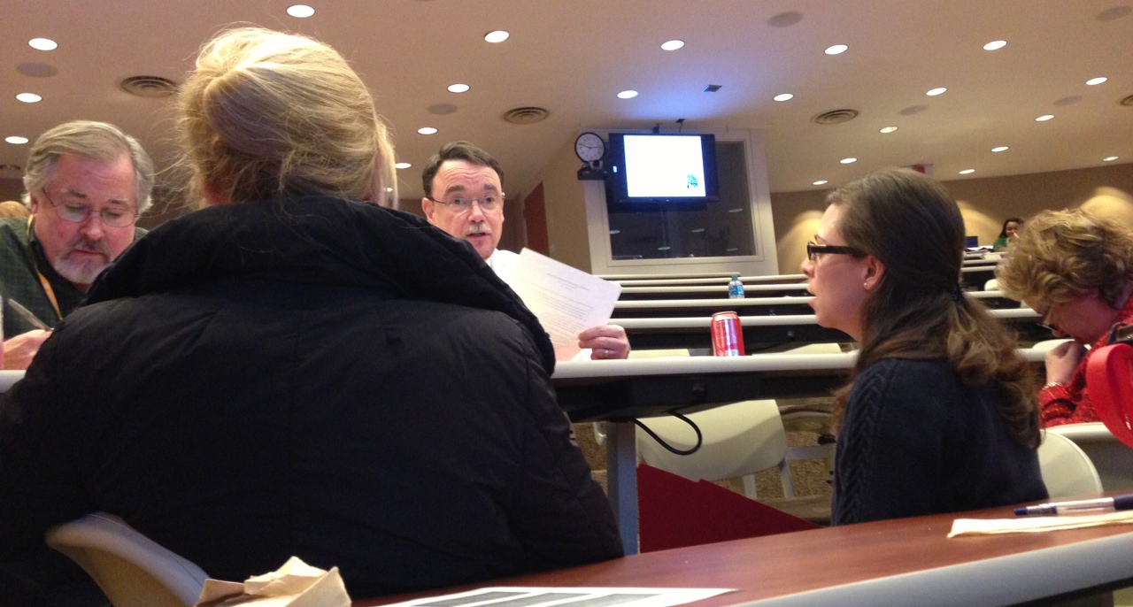 After our college presenters, the workshop facilitators took over and led a dynamic, interactive, team-based learning session. Below you’ll see pictures of groups working on the Individual Readiness Assessment Test (IRAT) and the Team Readiness Assessment Test (TRAT).